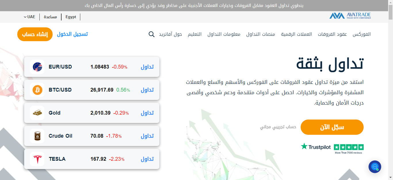 بحكم شفافية الموقع وميثاق حماية المتداوليين أن نخطرك بأن شركة أفاتريد AvaTrade لا